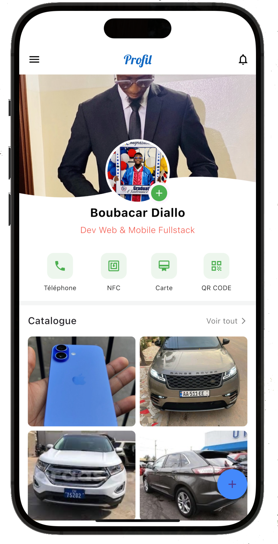Vous pouvez inclure vos informations de contact, vos réseaux sociaux, votre site web, vos produits, votre menu (pour les restaurants) et toute autre donnée que vous souhaitez partager instantanément.