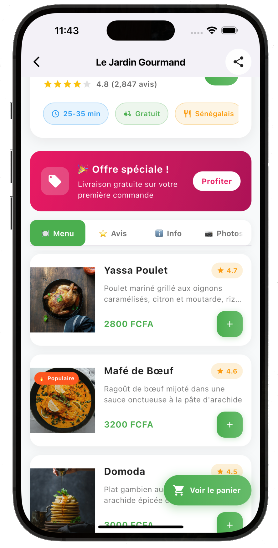 Ajoutez vos menus, modifiez-les à tout moment et suivez vos commandes en temps réel.